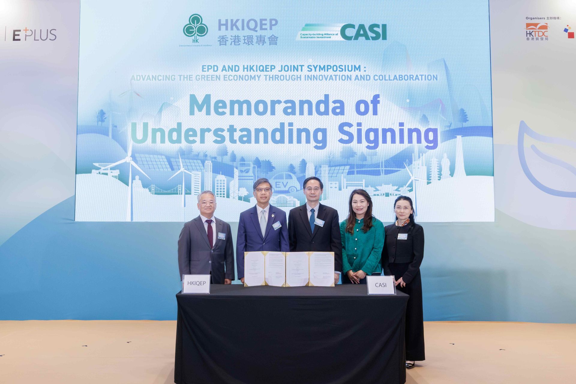 During the seminar, the Capacity-building Alliance for Sustainable Investment (CASI) signed a Memorandum of Understanding (MoU) with HKIQEP to strengthen professional capacity building and promote regional green economic cooperation. Dr. Ma Jun, Chairman of CASI, gave a brief introduction to the alliance and shared insights on the important role that capacity building, including initiatives under the CASI Academy, can play in supporting the growth of the sustainable finance industry both in Hong Kong and beyond. He underscored the value of closer collaboration between CASI and professional institutions, such as HKIQEP, in co-developing learning contents and training programmes for the Hong Kong sustainability community.